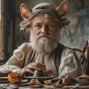 «3D Pixar style: A dynamic shot of a fluffy, slightly plump brown...»