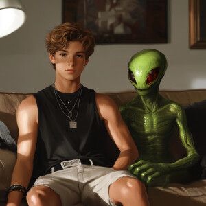«Create an image of a confident 22-year-old European man with han...»