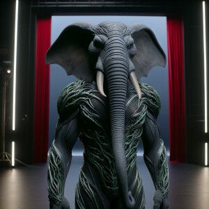 «Create an image of an anthropomorphic elephant with a sleek, for...»