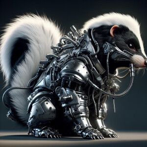 «Intricately textured, hyper-realistic 3D closeup of a skunk with...»