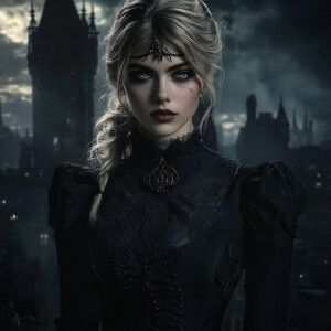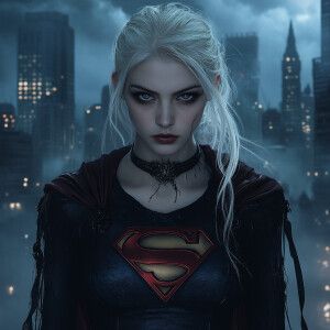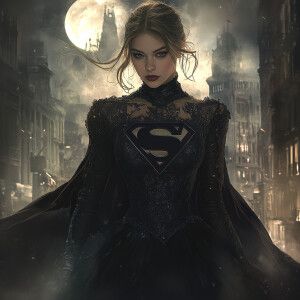 «Create an image of a Supergirl character reimagined in a Gothic...»