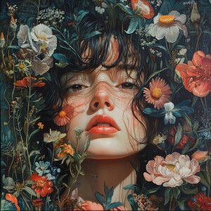 «“A highly detailed sketch of a woman with long, flowing hair, po...»