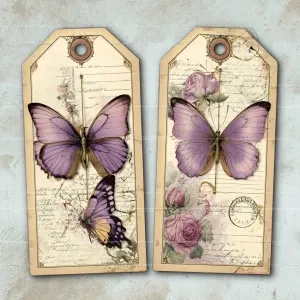 «Victorian Mauve Rose Butterfly Tags – 2 Large Tags (A4 & US Lett...»