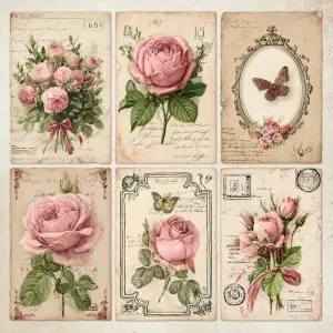 «Victorian Mauve Rose Portraits – 4 Cards (Antique Roses & Ladies...»