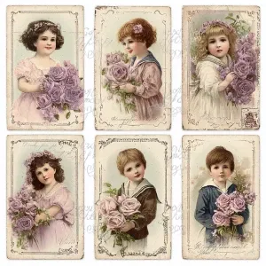 «Victorian Mauve Rose Portraits – 6 Cards (Children with Bouquets...»