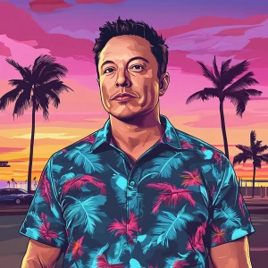 «a charismatic man in a sharp suit giving a chaotic presidential...»