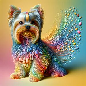 «A hyper-realistic, surreal image of a living yorkie, crafted ent...»
