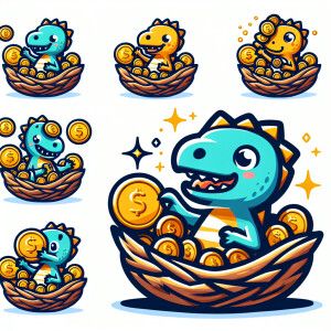 «A cute dinosaur that collects shiny coins, representing the time...»