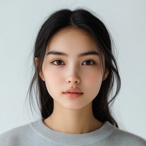 «A 22-year-old Japanese woman with a clean face, looking straight...»