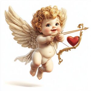 «Create an image of a photorealistic, adorable, chubby cupid with...»