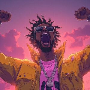 «Design an animation depicting the rapper Rod Wave in a whimsical...»