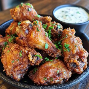 «Create an image of deep-fried whole chicken wings with a crispy...»