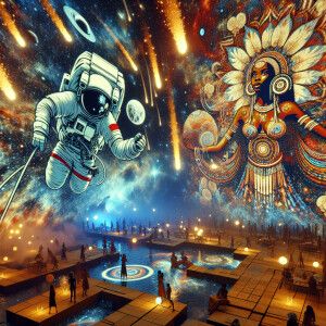 «Amidst the swirling nebulae and twinkling stars, a kaleidoscope...»