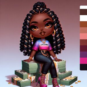 «Chibi-style African American Boujee girl with warm brown eyes, s...»