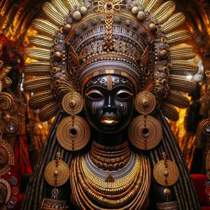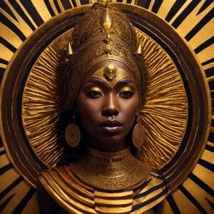 «Hypnotic ritual African goddess made of gold and ebony in a fant...»