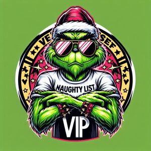 «A character inspired by the Grinch with crossed arms, wearing av...»