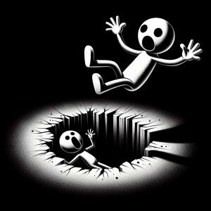 «stickman figure falling into the abyss with arms and legs flaili...»