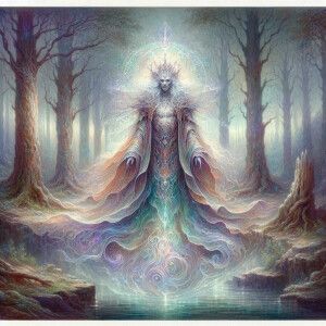«In a misty forest clearing, an enigmatic enchanter stands tall,...»