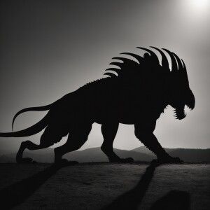«silhouette of a xenomorph crawling, black and white, showing ful...»