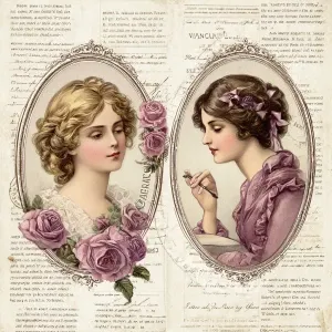 «Victorian Mauve Rose Cameos – 4 Medallion Cards (Antique Portrai...»