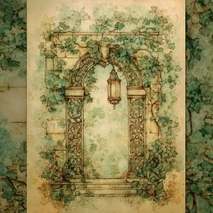 «Print-ready junk journal page, A4 portrait full-bleed, 300 DPI....»