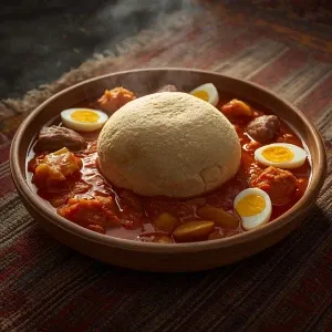 «Epic photorealistic masterpiece, a traditional Libyan Bazeen mea...»
