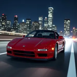 «Generate a detailed image of a red 1999 Honda NSX cruising throu...»