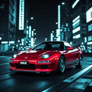 «Create a realistic image of a red 1999 Honda NSX, a Japanese spo...»