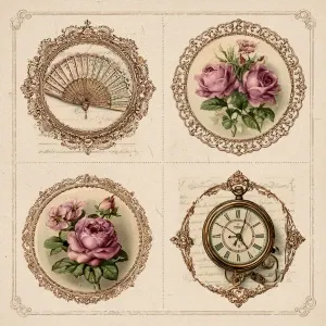 «Victorian Mauve Rose Rococo Medallions – Page 2 (4 Round Cards,...»