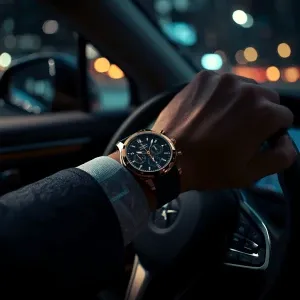 «cinematic close-up shot, a luxury Swiss watch on a man's wrist,...»