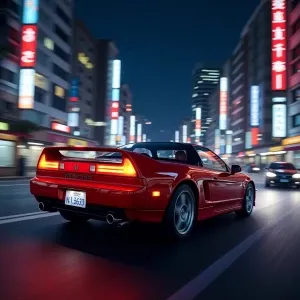«Create a realistic image showing a 1999 Honda NSX driving throug...»