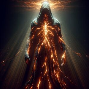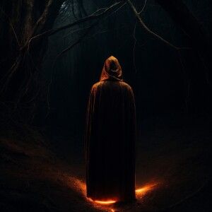 «This image depicts a dark, mysterious figure standing in a shado...»