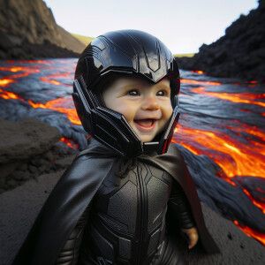 «Closeup portrait of Darth Vader standing by a lava river»