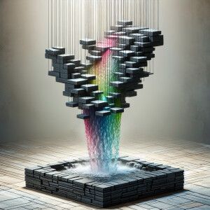 «Design a suspended waterfall fountain with multiple segments lev...»