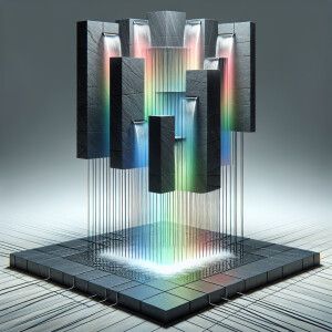 «Design a suspended waterfall fountain with multiple levels of th...»