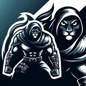 «muscular menacing catlike figure with piercing eyes in a ready t...»