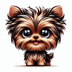 «A cartoonish style image of a smiling whimsical yorkie with exag...»