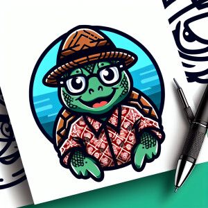 «seekor penyu menggunakan kacamata dan baju batik»