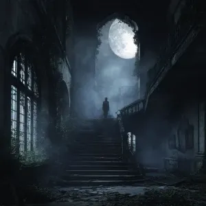 «A person standing in a serene forest clearing, surrounded by tal...»