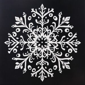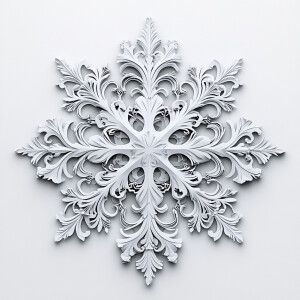 «Design a symmetrical white snowflake with detailed and bold patt...»