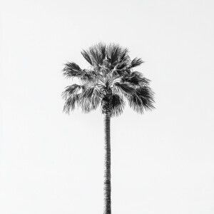 «Palm Tree: Illustrate a single palm tree with a thick trunk and...»