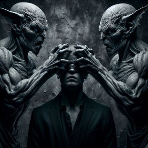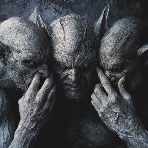 «Create a hyper-realistic detailed image featuring two menacing,...»