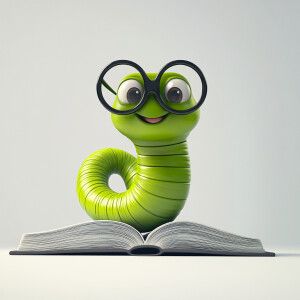 «Create an image of a vivid green, happy worm with a charming smi...»