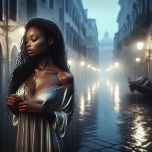 «A cinematic scene featuring an African American woman with drops...»