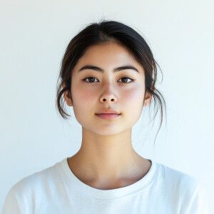 «Portrait of a 19-year-old Japanese woman with a clean face, exhi...»