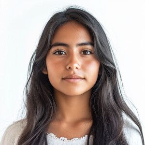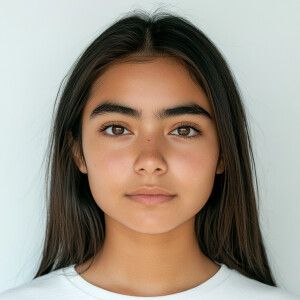 «A 19-year-old Mexican woman with a clean face, looking straight...»