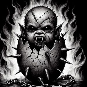 «horrorcore dark-art style demonic vampire baby with stitched fac...»