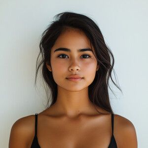 «Create an image of a 22-year-old Filipina woman with brown skin...»