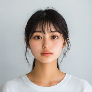 «Portrait of a 19-year-old Japanese woman with a clean face, exhi...»
