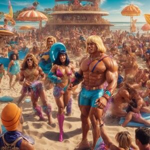 «Create an illustration of a crossover cartoon featuring He-Man c...»
